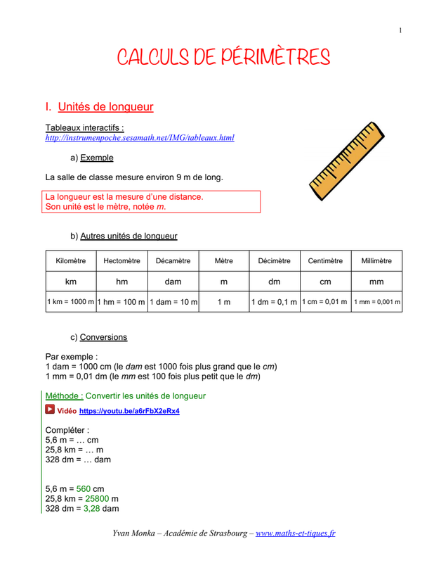 Périmètre pour les 6è/5è, cliquez sur les liens en bleus pour regardez les vidéos qui correspondent aux cours.
